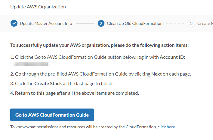 - Click Go to AWS CloudFormation Guide to be re-directed to AWS CloudFormation guide to clean up the previous configurations.