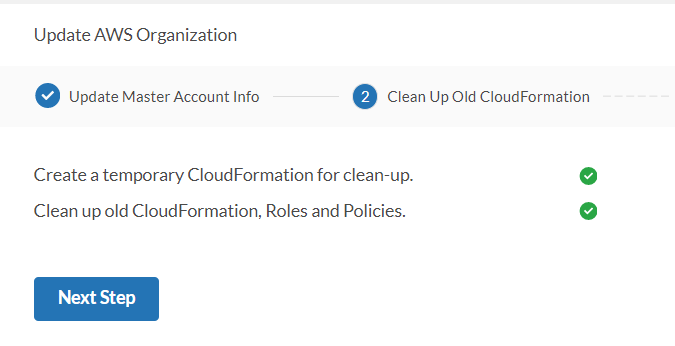 - In Update AWS Account selection, select Update AWS Organization and click Update AWS Account.