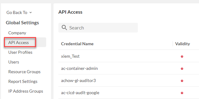 - Click API Access from the Global Settings menu.