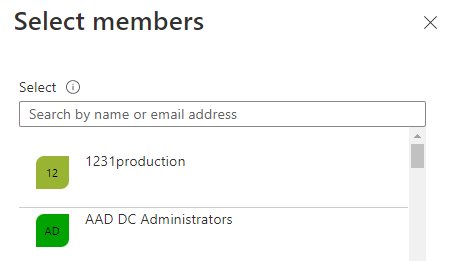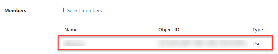 - In Members, click + Select members to add a member (user account) that will be associated with the subscription role.