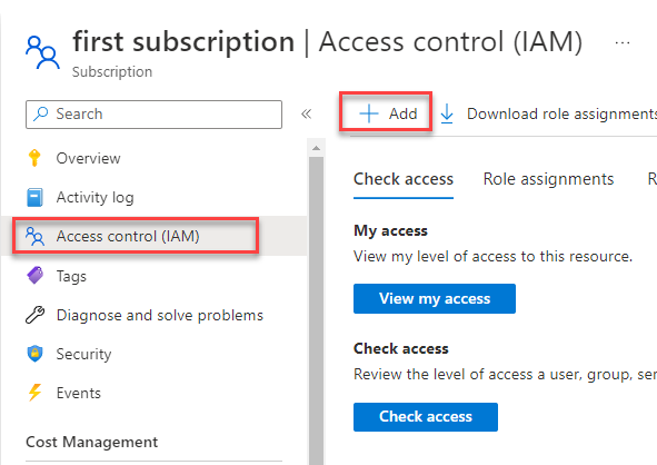 - In the Subscription menu, click on Access control (IAM).