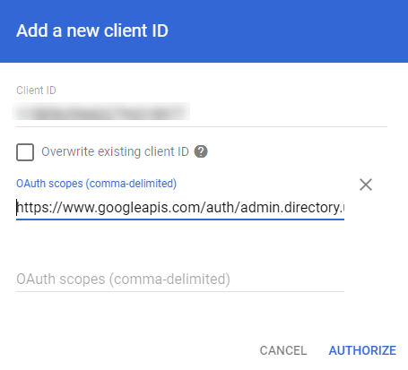 - In the Client ID field, enter the Client ID saved from Configure Service Account. Your Client ID must be a string of numbers.
