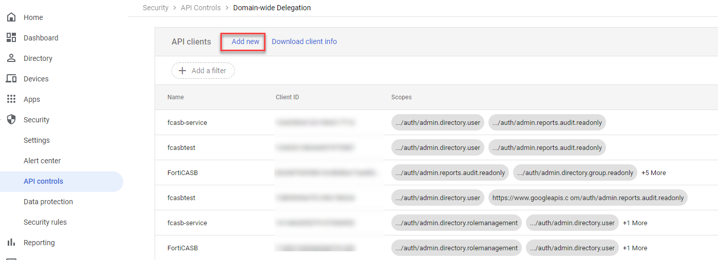 - Click Add new to authorize the registered client to access your user data.