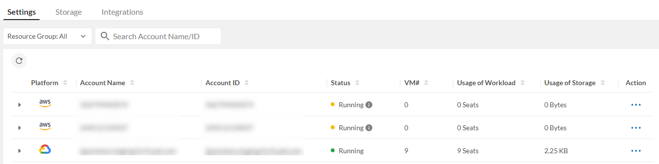 License Validation status is in between Initializing and Running stage. At this stage, the system checks if there are sufficient license seats to either add the new cloud account or turn on account monitoring again on existing accounts with Insufficient License status. |