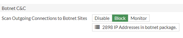 - In Botnet C&C, select Block, then click OK to finish creating the IPS Sensor.