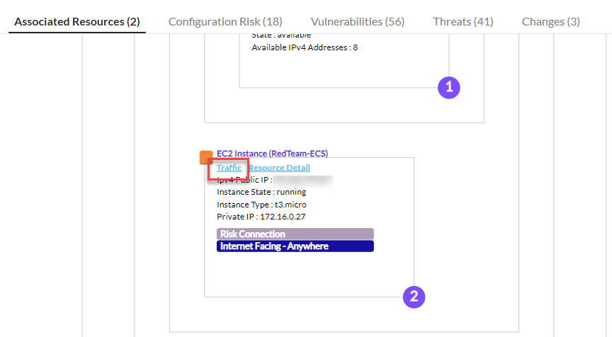 - Under Associated Resources, for resource types that has traffic enabled (ex. EC2 , RDS instances, etc.), click on Traffic.