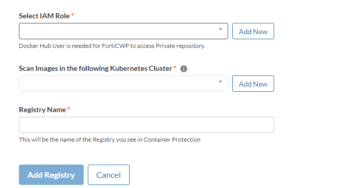- Enter an unique Registry Name that will be shown in Container Protection.