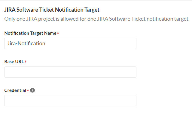 Use the Jira account e-mail address and API token you got from Jira Software Configuration to create the Jira Notification Target.