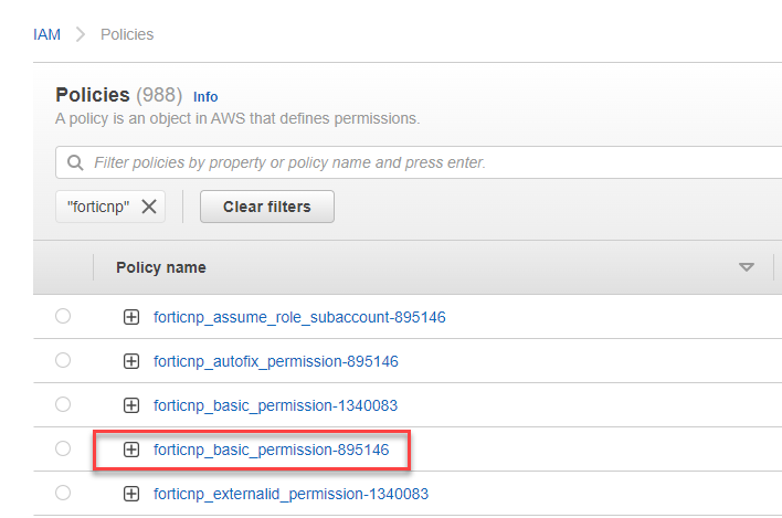 | Add One Account Manually | Create policy and permission names with the UUID included and add the account again, for example " forticnp_basic_permission_UUID". Follow the tutorial guide in Add AWS Account Manually. |