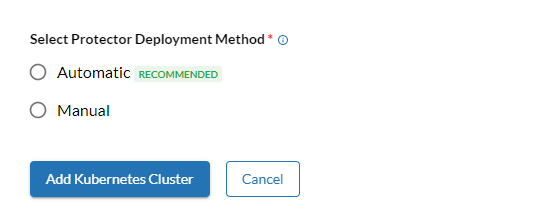 - Select Manual as the deployment method and click Add Kubernetes Cluster.