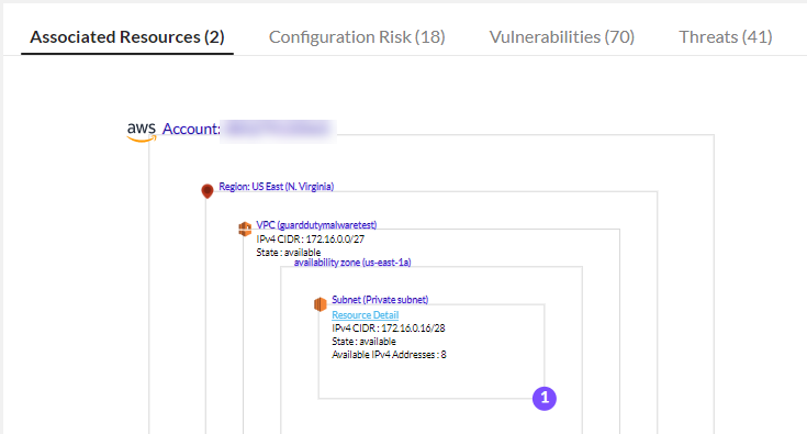 - Click on Resource Detail to see all cloud resources under the specific EC2 instance, Subnet, etc.