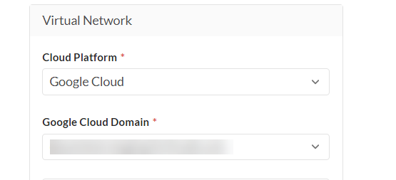 - Then select the Google Cloud Domain that hosts the virtual network.