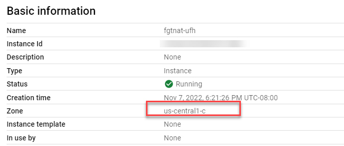 - Make a note of the Zone in Basic information.