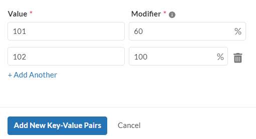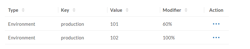 Enter "production" for Key, and "101" for Value. Then enter "60" for the Modifier.