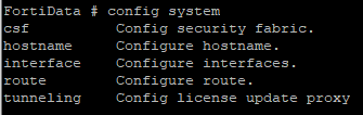 Enter config system ? to display all configuration system related commands and their descriptions.