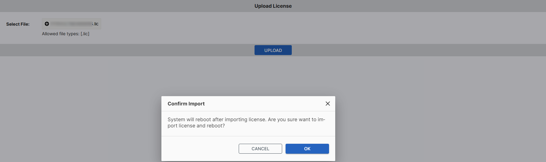 Click Upload or Upgrade at the end of the License field.