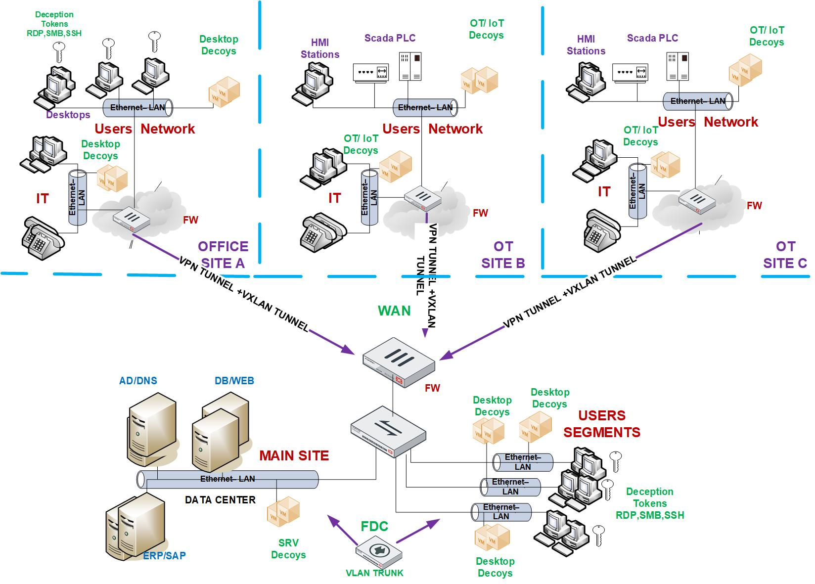 Deception deployment in HQ, remote offices, and OT sites
