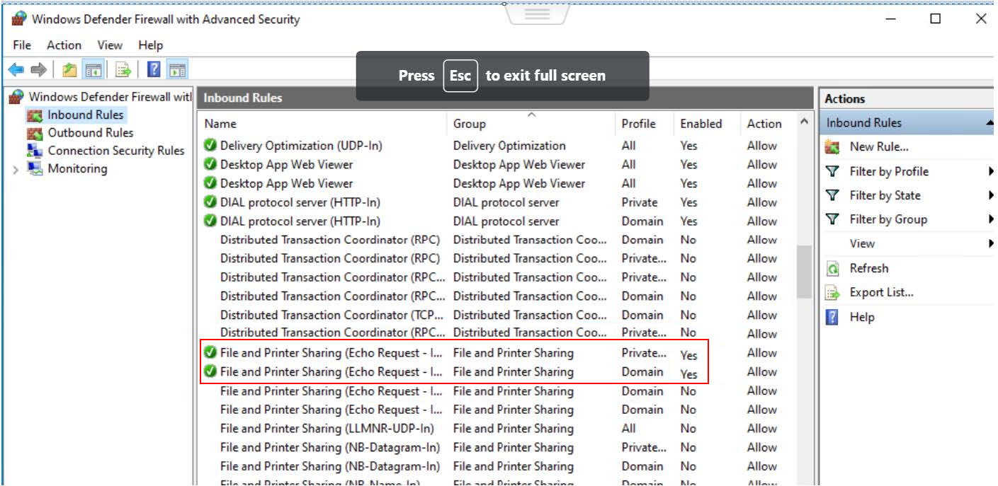 - Scroll down to File and Printer Sharing (Echo Request - ICMPv4-In).