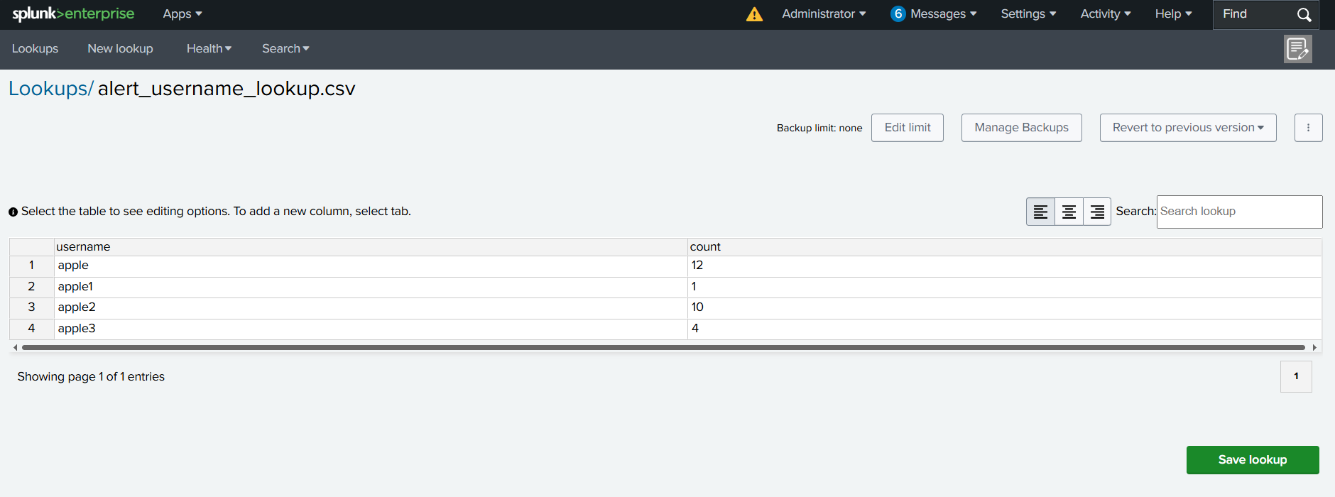 - In Splunk, go to Apps > Splunk App for Lookup File Editing.
