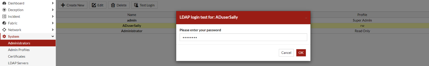Configure a Active Directory (AD) user as FortiDeceptor administrator