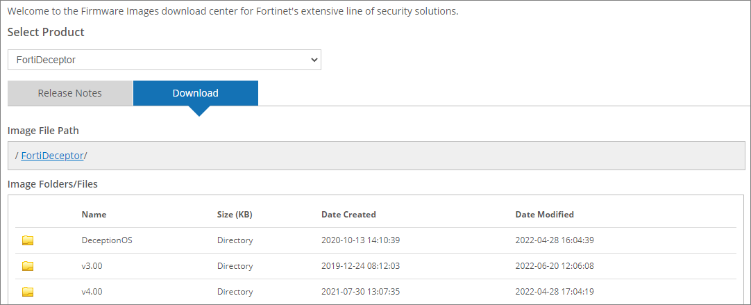 - In the Select Product dropdown list, select FortiDeceptor and then click Download.