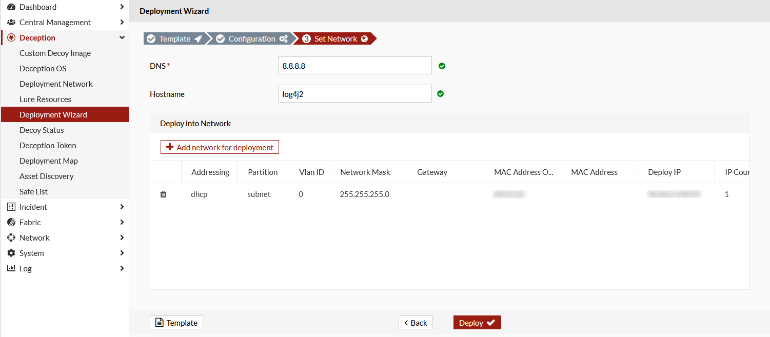 Available Deception DecoysSelect and outbreak deception decoy. For example, Log4j2.