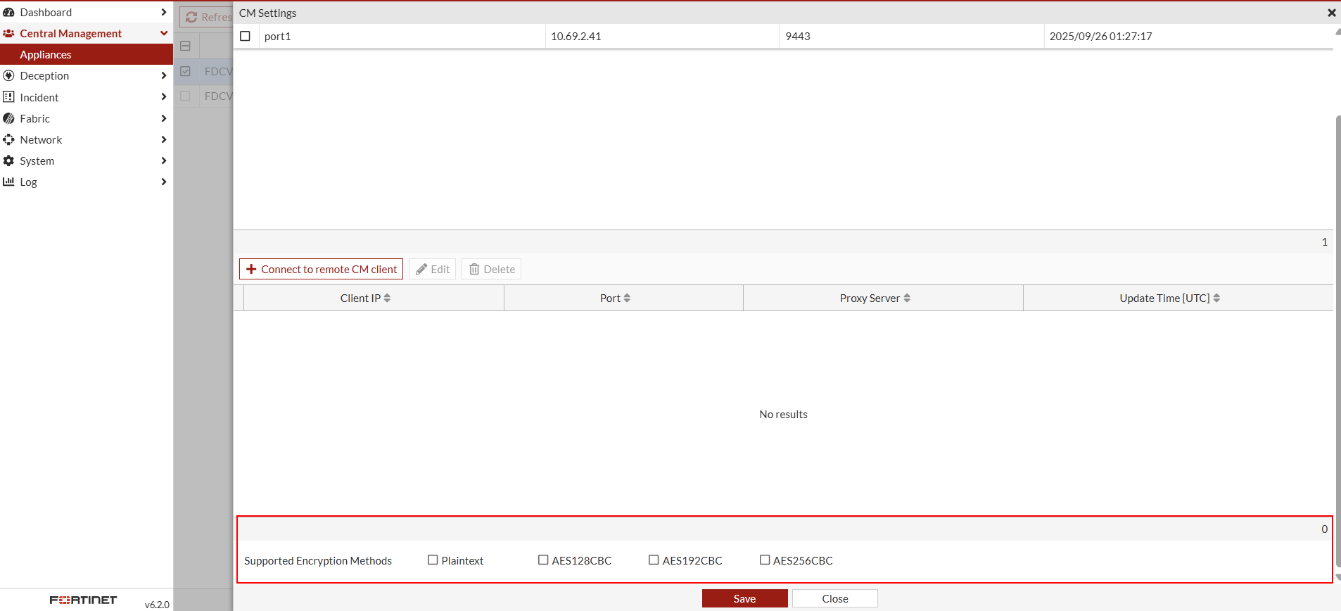 - Select the encryption methods and click Save.
