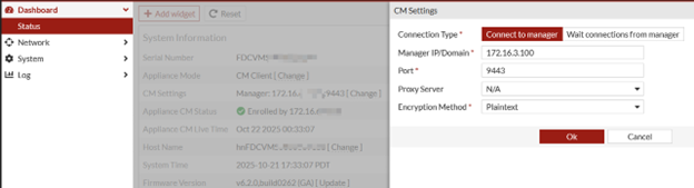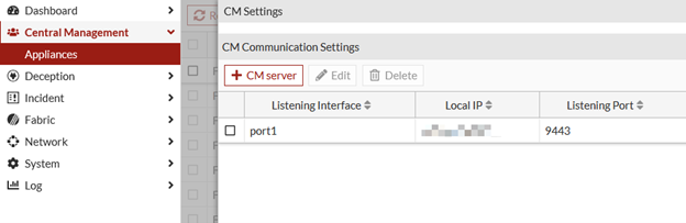 - Go to Central Management > Appliances and click CM Settings.