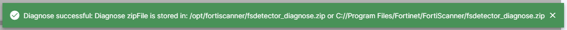 • Diagnose—You can perform a diagnosis on an online Detector. FortiDevice displays a message about the location of the detailed debugging report at the bottom of the Detectors page.