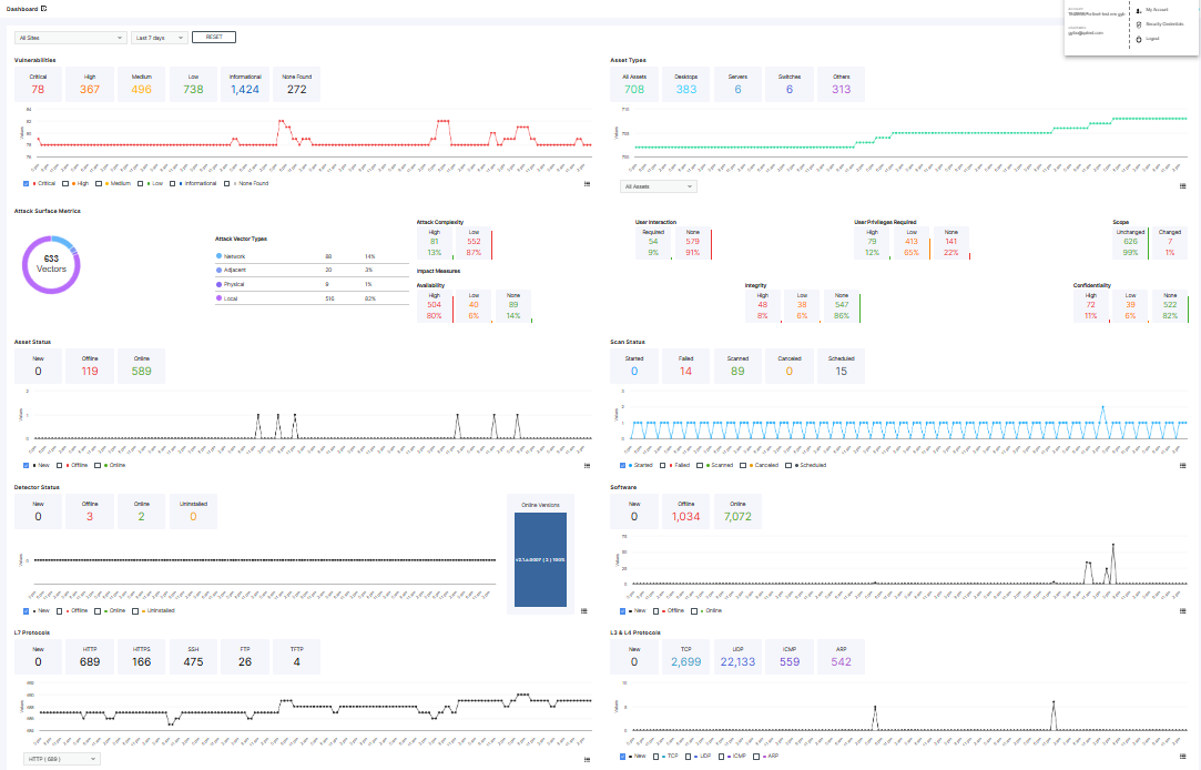 The Dashboard page is the standard visual view into your asset inventory and is populated with results after the scan completes. The Dashboard page provides trend data and insights that will help you assess how your inventory is changing over time.