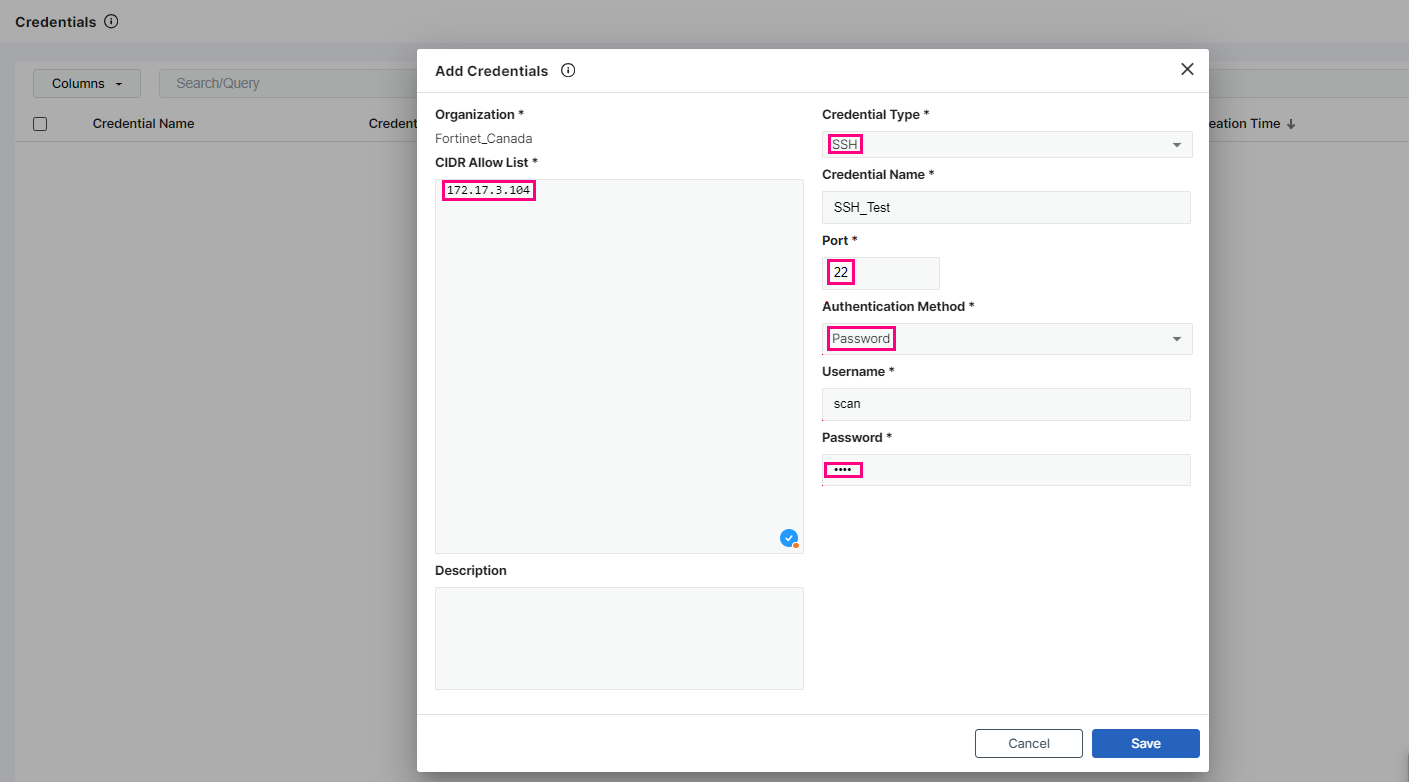 8. In the Description field, enter a description of these credentials.