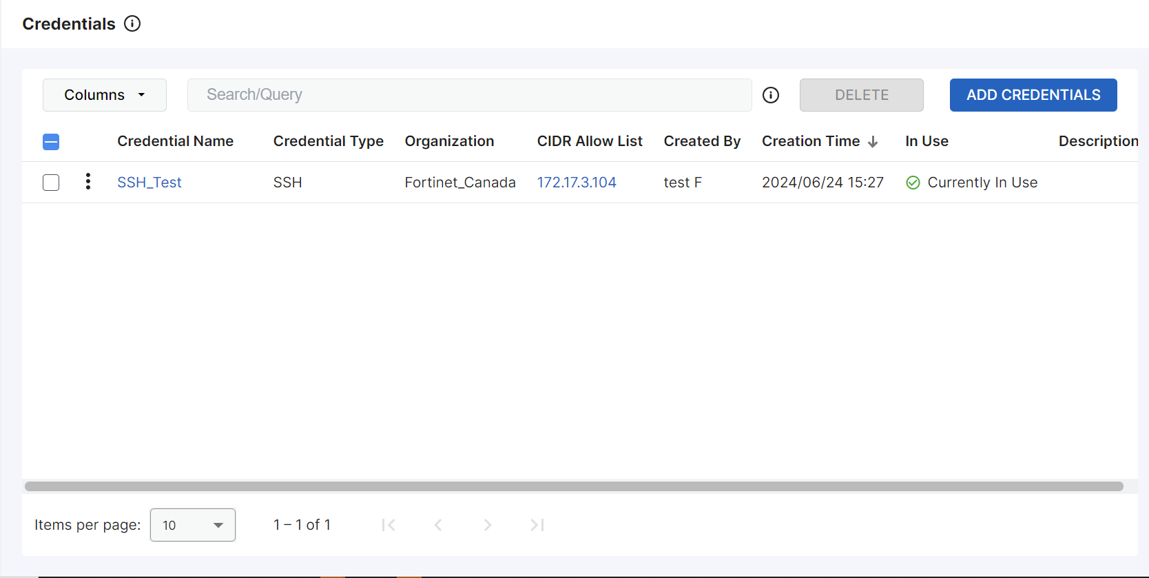 The new credentials are listed in the Credentials page.