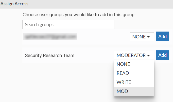 To modify access permissions or remove a member group, click Modify Access or Remove.