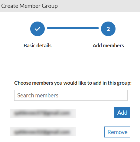 Add members to the group by searching for the desired users and clicking Add next to their names.