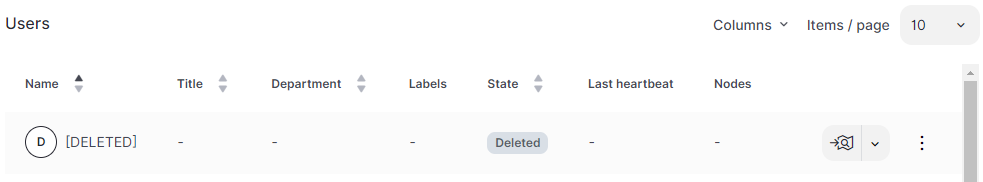 When you delete a user, you remove their directory information and labels. Additionally, you remove all references to the user, such as where they are associated with events, detections, incidents, and nodes. To indicate a user was historically associated with an event, the text "[DELETED]" will replace the user's details.