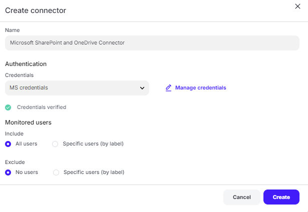 (see Microsoft credentials) . - Optionally, in the Monitored users section, do one of the following: