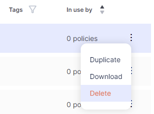 You can easily delete unwanted custom assets. When you delete a custom asset, that asset is removed from the Policy assets tab and relevant policy template selection menus.