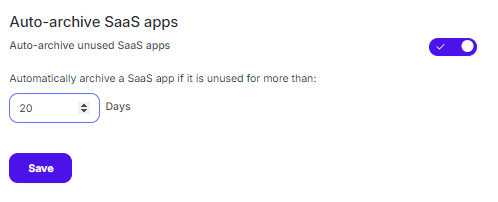 - Turn the Auto-archive unused SaaS apps toggle on.