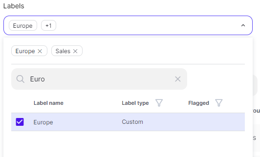 - Select one or more labels from the Labels list.
