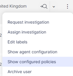 Configured policies displayed in this modal reflect the current state of all policies that have been configured in the FortiDLP Console, rather than the state of policies that have been applied by the Agent. Therefore, results could include unpublished changes saved to a policy or policy group.