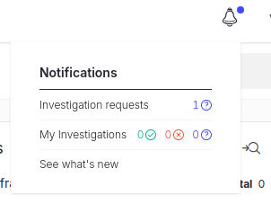 icon on the top menu bar of the FortiDLP Console will display a blue circle to indicate when there are investigation requests requiring review. To see the requests, just click the