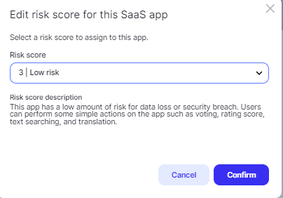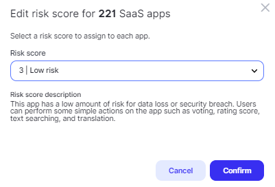 To edit an individual app's risk score or edit multiple app risk scores at one time, follow these instructions.