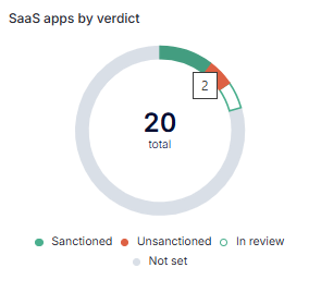 - To filter by an app verdict in the Inventory tab, click a verdict in the SaaS apps by verdict widget.