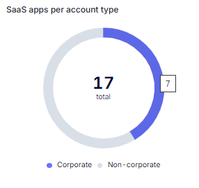 - To filter by apps in the Inventory tab that have been accessed with a corporate or non-corporate account at least once, click an account type in the SaaS apps per account type widget.
