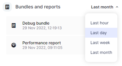 - In the Bundles and reports widget, select the time frame of the bundles and reports you want to view.