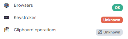 icon. A suppressed component's health does not contribute to the overall health of the node or the health of any related components. For example, if the macOS Clipboard Monitor and clipboard operations event stream were in an unhealthy/red "Unknown" state, by default, the node would also be unhealthy. However, if you suppressed both of these components (and there were no other unhealthy components), these components would display with a gray "Unknown" state and the node would display as healthy overall.