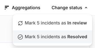 - On the top-right corner of the page, click Change status > Mark [n] incidents as Resolved.