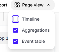 - To filter the events by a specific value on the page or view more information about a value, click the value and then click the relevant context box button.