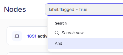 Multiple filters can be used to perform AND searches. OR searches are not supported. However, you can use the in or !in operators to apply OR logic in relation to specific properties. For example, to search for nodes from either the United States or the United Kingdom, enter