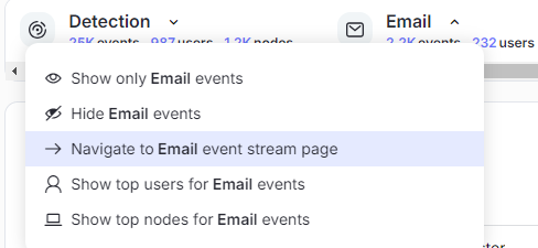 - To apply a filter or navigate to a page related to a visible event stream, at the top of the page, click